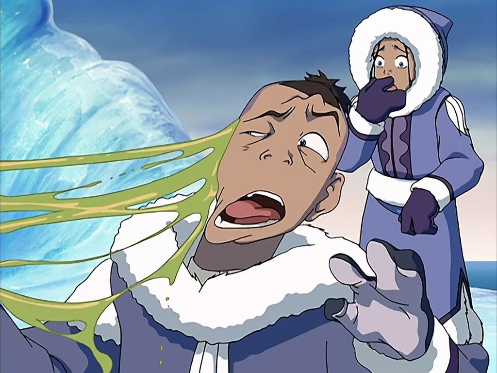Sokka has been the comic relief character since episode 1, with sarcasm and slapstick being his main comedic flavors. He reacts to the situation, be it making funny noises when Appa’s snot gets all over him or being very clear about his hunger at the Southern Air Temple.