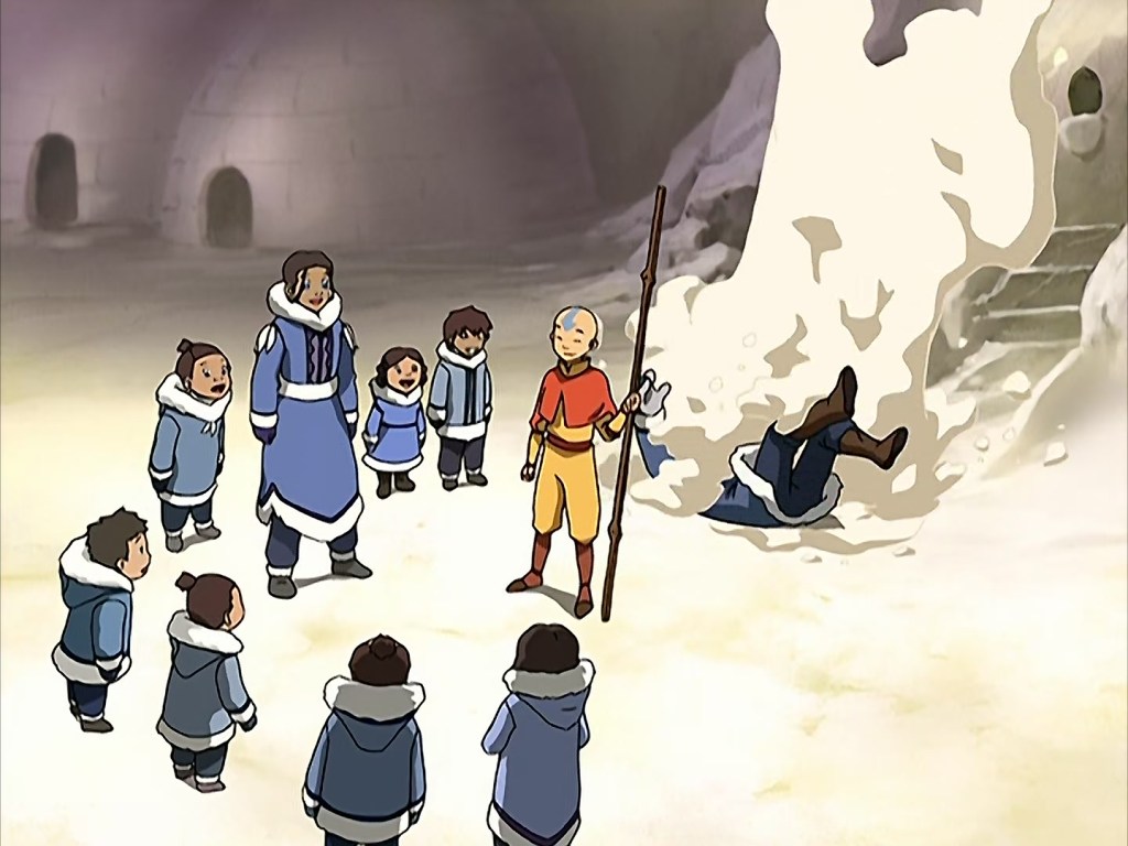 And I think that’s because Sokka begins the journey as a kid trying to be an adult. He takes on the responsibility of protecting the Southern Water Tribe and training the boys for battle. Even though he lacks experience, he feels like he doesn’t have a choice: he is the only young man left in the tribe, and his father had asked him to protect it.