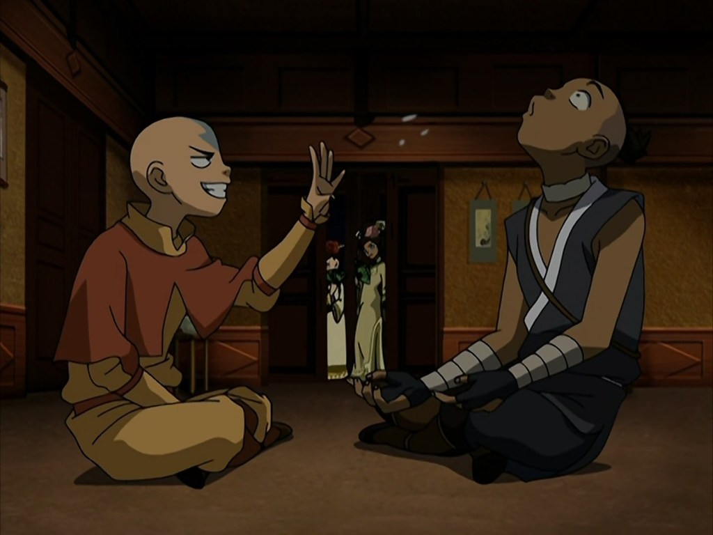 I like to think that a lot of Sokka’s fun-ness was something that Aang helped bring out in him. The pair have one of my favorite dynamics in the show. Because individually, they’re geniuses. Aang is an airbending prodigy, the youngest to earn his arrows. Sokka is a strategist and a natural inventor, intuitively solving the hot air balloon problem and inventing the submarine.